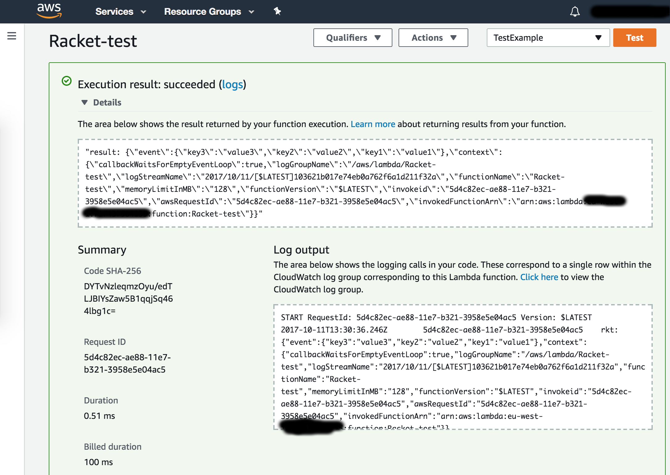 See proof below, using the 128MB memory configuration, and runtime of 0.51ms (yes that’s less than a millisecond)!